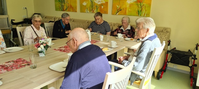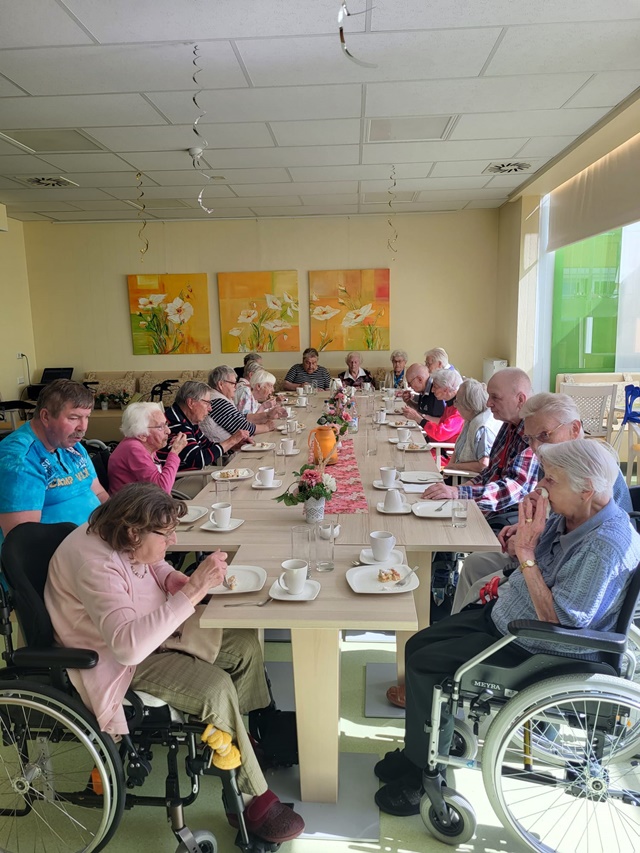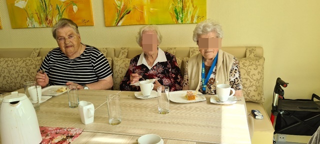 Dieses Treffen bieten ihnen die Möglichkeit über viele hausinterne Dinge zu sprechen, es gibt Bewohner die kennen sich noch von früher und sind erstaunt, dass sie sich doch nochmal wieder treffen und andere Bewohner genießen einfach den Moment und lassen den Kuchen schmecken.