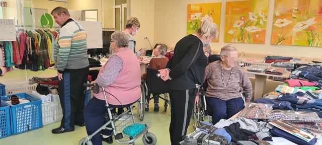 Ganz spontan kam der Kleiderverkauf Uhlig aus Chemnitz in unser Haus. Da es für viele Bewohner nicht mehr möglich ist in die Stadt zu fahren oder andere Geschäfte aufzusuchen, ist dieser Kleiderbasar eine super Möglichkeit, um mal wieder etwas Neues zu kaufen. Alle Bewohner waren froh, dass sie ausreichend Zeit hatten und haben natürlich auch das eine oder andere Kleidungsstück gekauft. Zum Verkauf gab es die Frühjahrskollektion unter dem Motto "Mit frischen Farben in das neue Jahr".