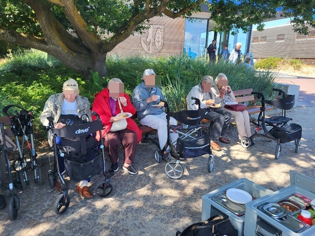Sommerzeit ist Grillzeit. Das ließen wir uns nicht zweimal sagen und versammelten uns am 26.06. im Innenhof um gemeinsam zu grillen. Es gab Bratwurst, Klopse, Nudelsalat, Gurkensalat und Toast mit Kräuterbutter. Es schmeckte allen sehr gut. Bei leckerem Essen wurde sich angeregt ausgetauscht und das gemeinsame Grillen genossen. Auch das Wetter meinte es gut mit uns. Nach anfänglichen Sonnenstrahlen, zog es sich zu. Auch ein paar Regentropfen zeigten sich. Dies störte uns aber nicht. Wir freuen uns schon sehr auf unseren nächstes Grillfest.