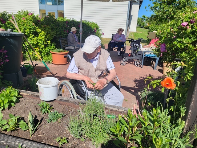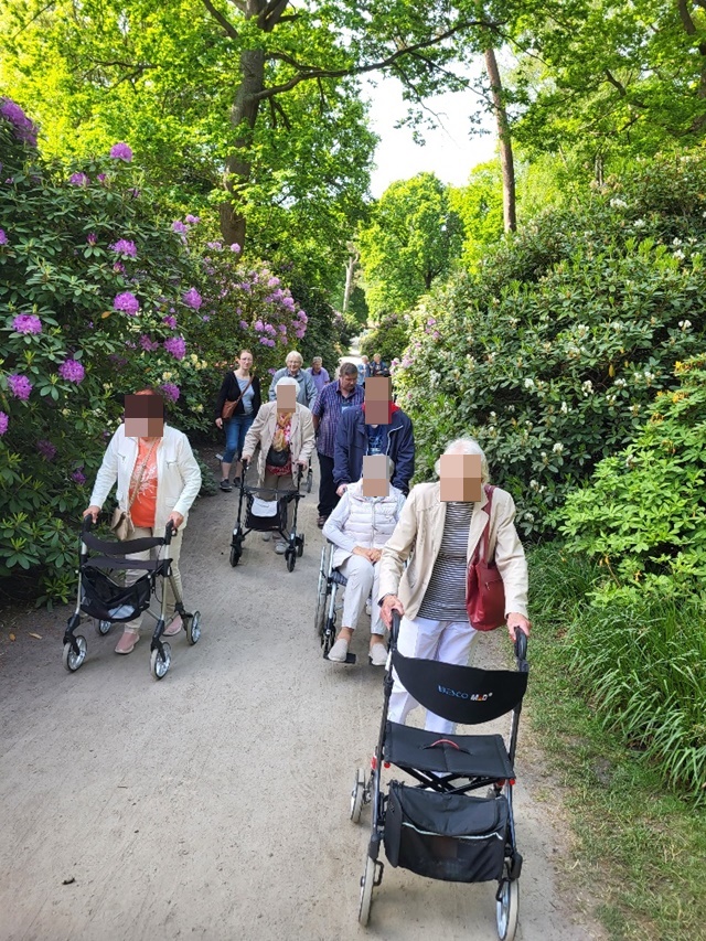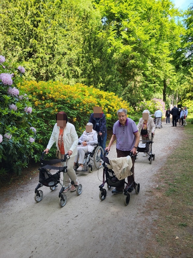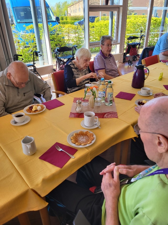 Aktuell zeigt sich das Wetter von seiner sonnigsten Seite. Dies erfreut uns alle sehr. Wir nutzen daher die Gelegenheit und verbrachten den Vormittag am 03.06. in unserem kleinen Garten. Viele der Bewohner hatten früher einen Garten, den sie täglich gepflegt und bearbeitet haben. Wir haben in unseren Hochbeeten verschiedenes angepflanzt. Ein kleines Kräuterbeet mit Petersilie, Schnittlauch, Thymian und Minze ist dort zu finden. Viele verschiedene Blumen zeigen ihre Blütenpracht. Aber auch unsere Erdbeerpflanzen wachsen schon fleißig. Einige Bewohner helfen gerne bei der Pflege der Beete und so waren wir auch sehr schnell fertig. Anschließend genossen wir die warmen Sonnenstrahlen und erfreuten uns an dem fleißigen Treiben der Bienen und Hummeln, die von einer Blüte zur nächsten flogen.