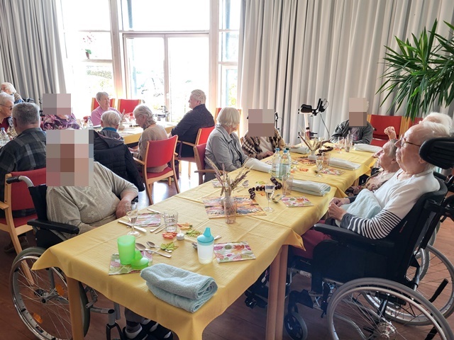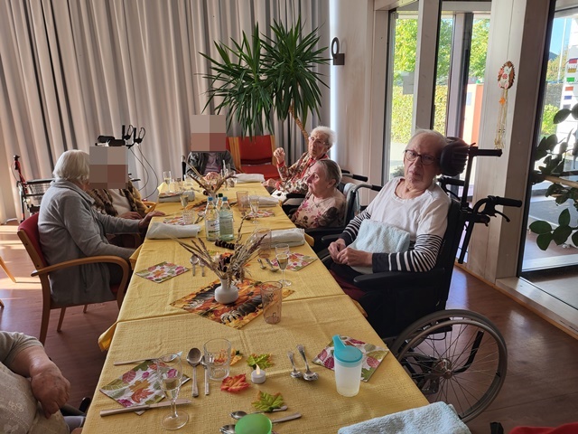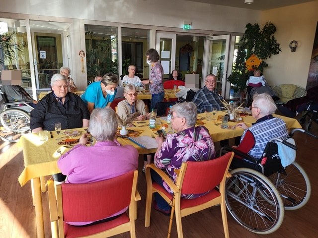 Am 22.09. versammelten wir uns alle im großen Saal um gemeinsam zu frühstücken. Da der Herbst schon vor der Tür steht, nutzen wir gleich die Gelegenheit um den Herbst mit dem gemeinsamen Frühstück einzuläuten. Für das leibliche Wohl war gesorgt. Unsere Küche hatte hierfür Brötchen und Brote lecker belegt. Natürlich durfte das Rührei mit Schnittlauch und Schinken nicht fehlen. Auch ein kleines Gläschen Sekt gönnten sich alle Bewohner. Es wurden angeregt Gespräche zu den verschiedensten Themen geführt. Auch wurde das Tanzbein zu bekannten Schlagerlieder geschwungen. Alle genossen den geselligen Vormittag und freuen sich schon auf die nächste gemeinsame Veranstaltung.