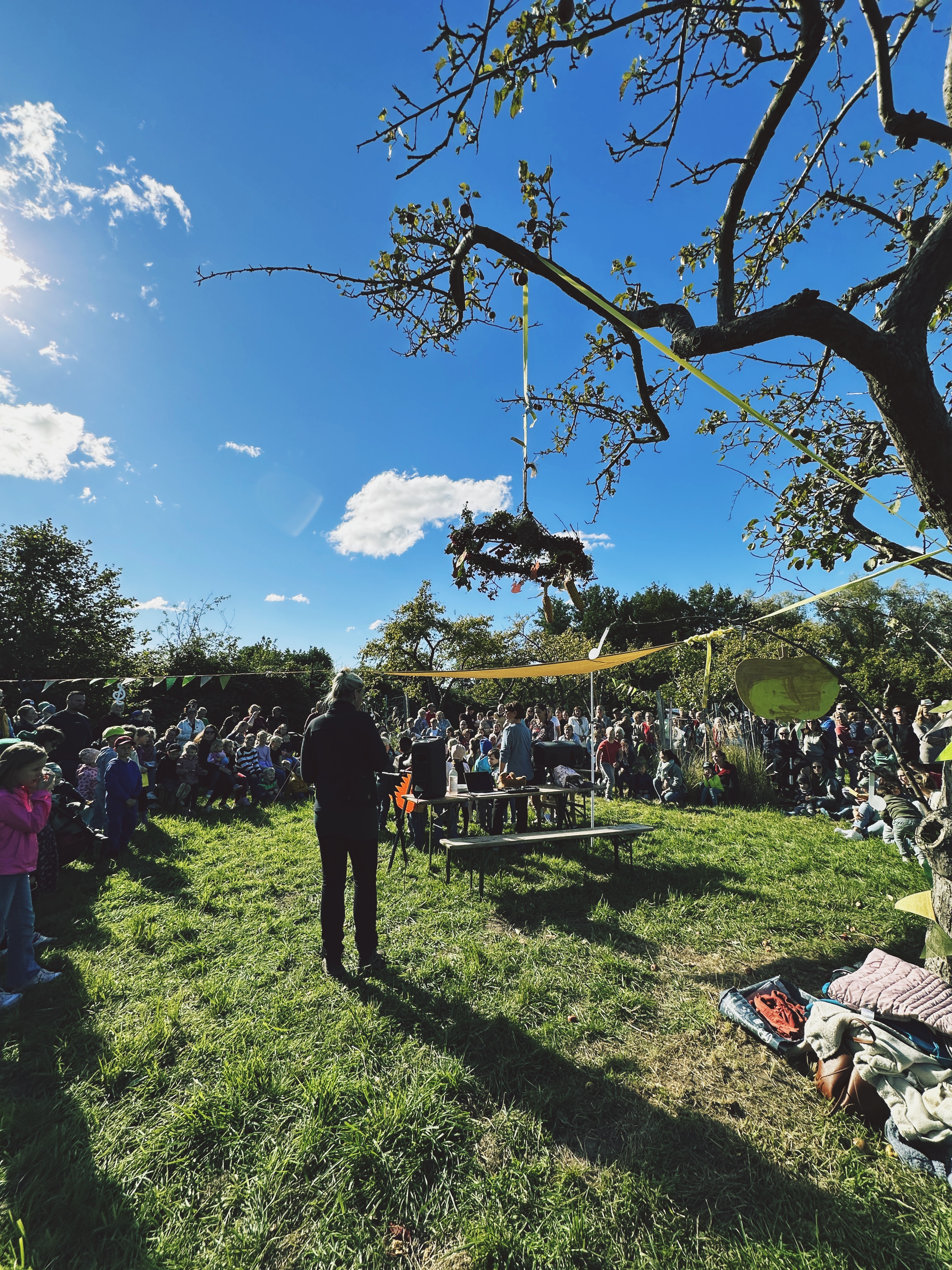 Unter dem Apfelbaum wurde getanzt, gesungen und gelacht. Unsere Kinderdisco sorgte für ausgelassene Stimmung. Am Feuer wärmten wir uns mit Apfelpunsch, dazu gab es Bratwurst im Brötchen, frischen Kuchen und heißen Kaffee. Überall duftete es herrlich nach Herbst.