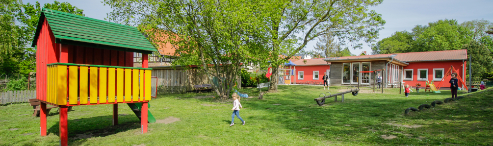 Versteckt zwischen Wiesen und Feldern, am Rande des Dorfes, liegt unsere kleine Einrichtung, die Platz für 36 Kinder zwischen 1 und 6 Jahren bietet. Ein Team von 5 Erzieherinnen begleitet und fördert die Kinder bei ihren Aktivitäten durch den Tag.