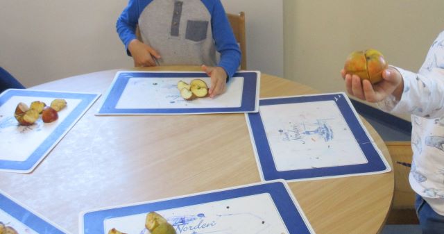 Nach dem Morgenkreis konnten die Kinder aus verschiedenen offenen Angeboten wählen – jedes mit Bezug zum Apfel:
