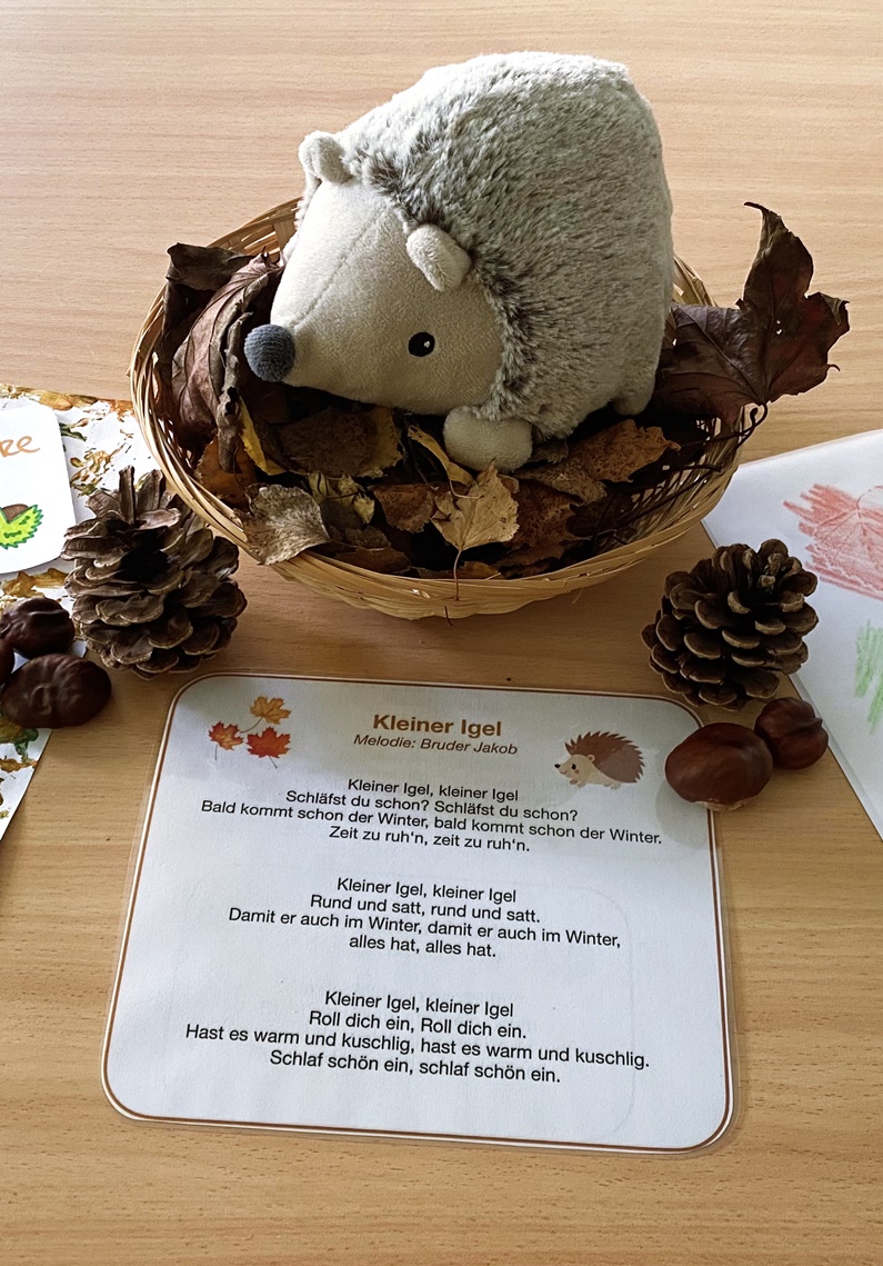 Hierbei erforschen wir besonders den Igel und seinen Winterschlaf. Wir schauen uns an, was der Igel im Herbst alles zu tun hat, bevor er sich in sein gemütliches Nest zurückzieht.