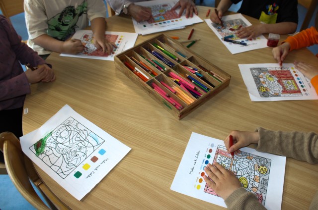 Kreativangebote – Ob beim Gestalten eines Willkommensschildes für die neuen Kinder oder beim Tupfen einer bunten Blumenwiese – der Fantasie waren keine Grenzen gesetzt.